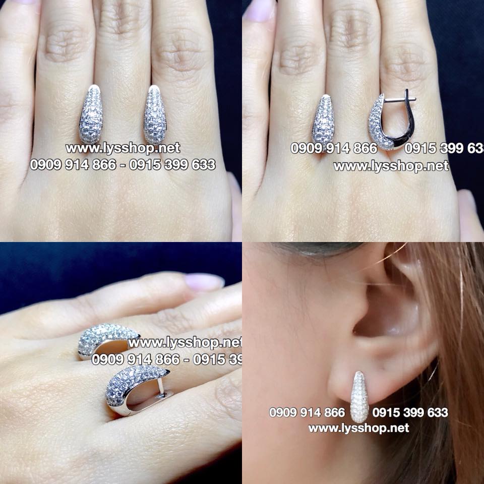 Bông tai còng kim cương thiên nhiên được nạm tấm mo tròn, rất tinh xảo, kiểu đơn giản, trẻ trung, dễ đeo hàng ngày!