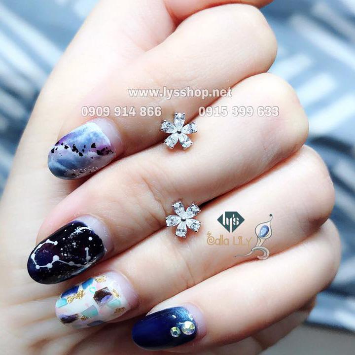 Bông tai kim cương thiên nhiên form hoa 5 cánh kết bằng các viên giọt nước cực cute, trẻ trung Form nhỏ