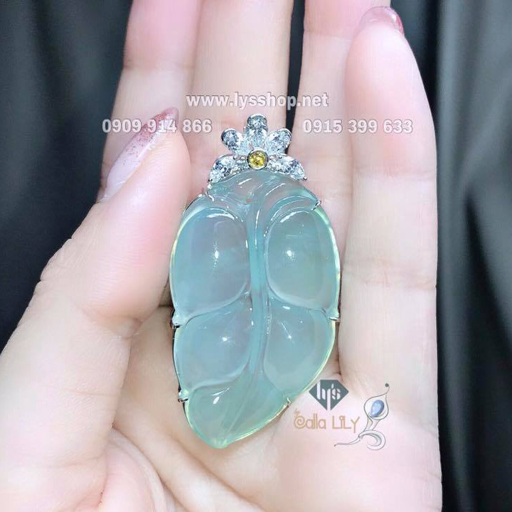 Mặt dây chuyền đá hình chiếc lá được phối kim cương thiên nhiên và đá màu!Mặt dây chuyền đá hình chiếc lá được phối kim cương thiên nhiên và đá màu!