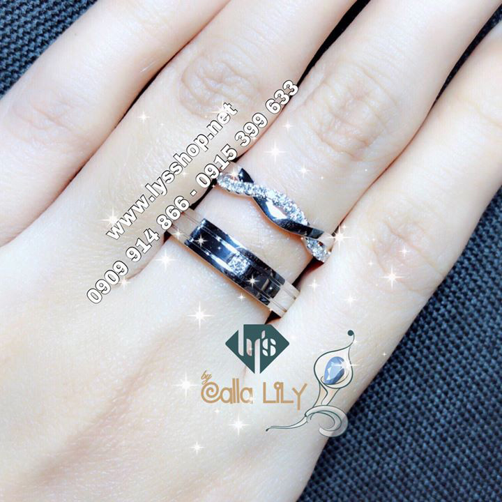 Cặp nhẫn cưới kim cương thiên nhiên với nhẫn nam đơn giản, nhẫn nữ đính tấm xinh xắn, điệu đàng. Có thể làm vàng trắng, hồng hoặc vàng.