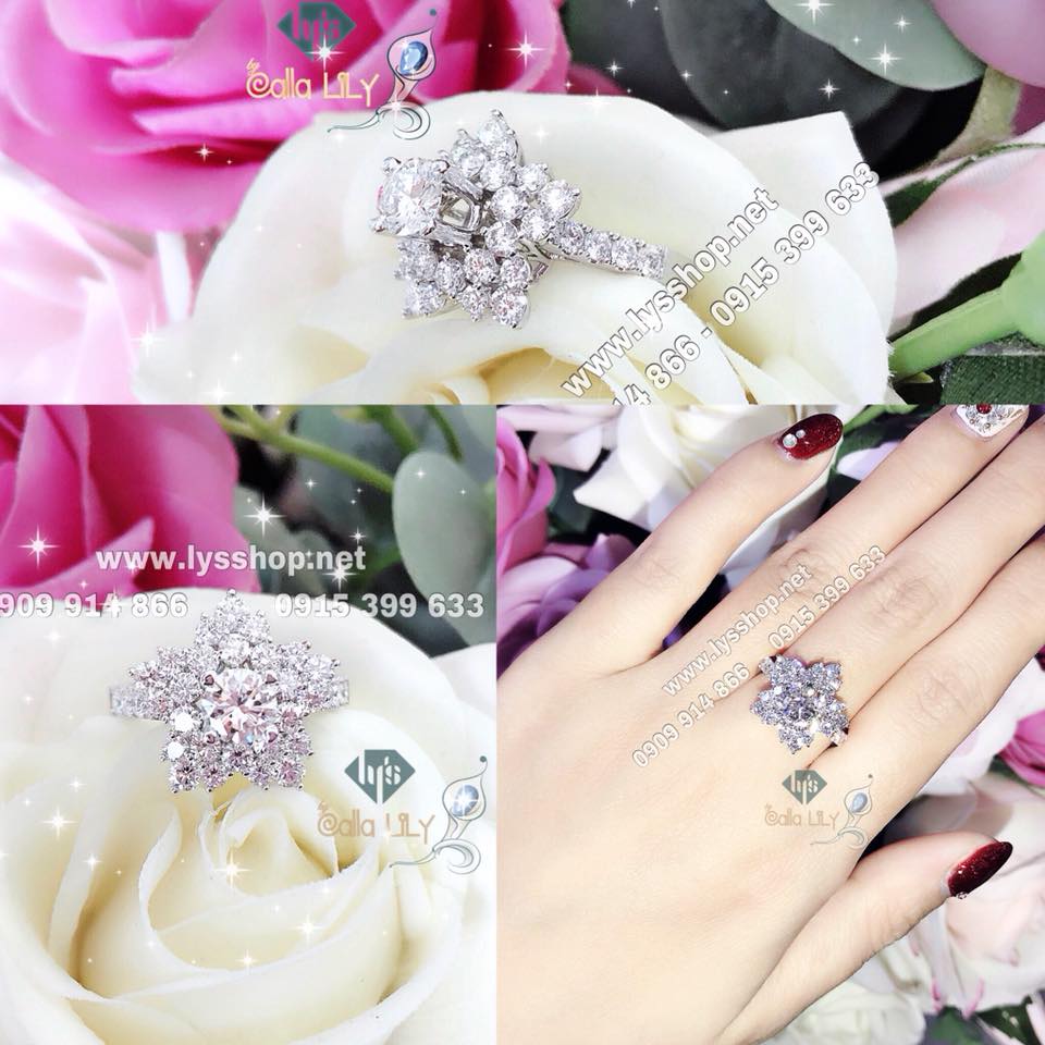 HÀNG ĐẶT 5-7 NGÀY Nhẫn form ngôi sao 5 cánh kết chùm tấm lớn sáng lộng lẫy và rất trẻ trung! Phù hợp viên chủ từ 5-6 ly