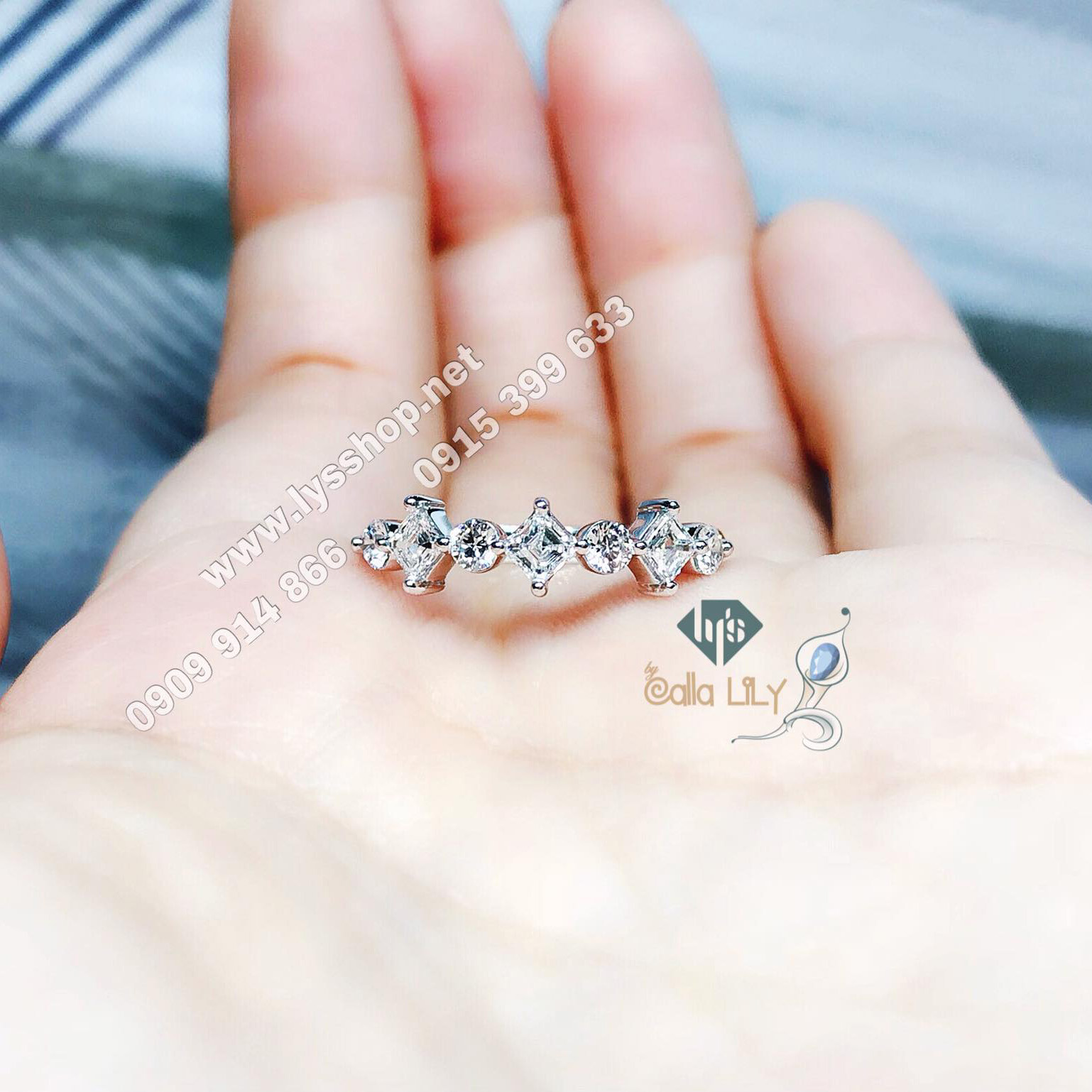 Nhẫn kim cương thiên nhiên dạng band rất rất xinh với các viên tấm asscher cut phối với tấm tròn độc đáo, trẻ trung