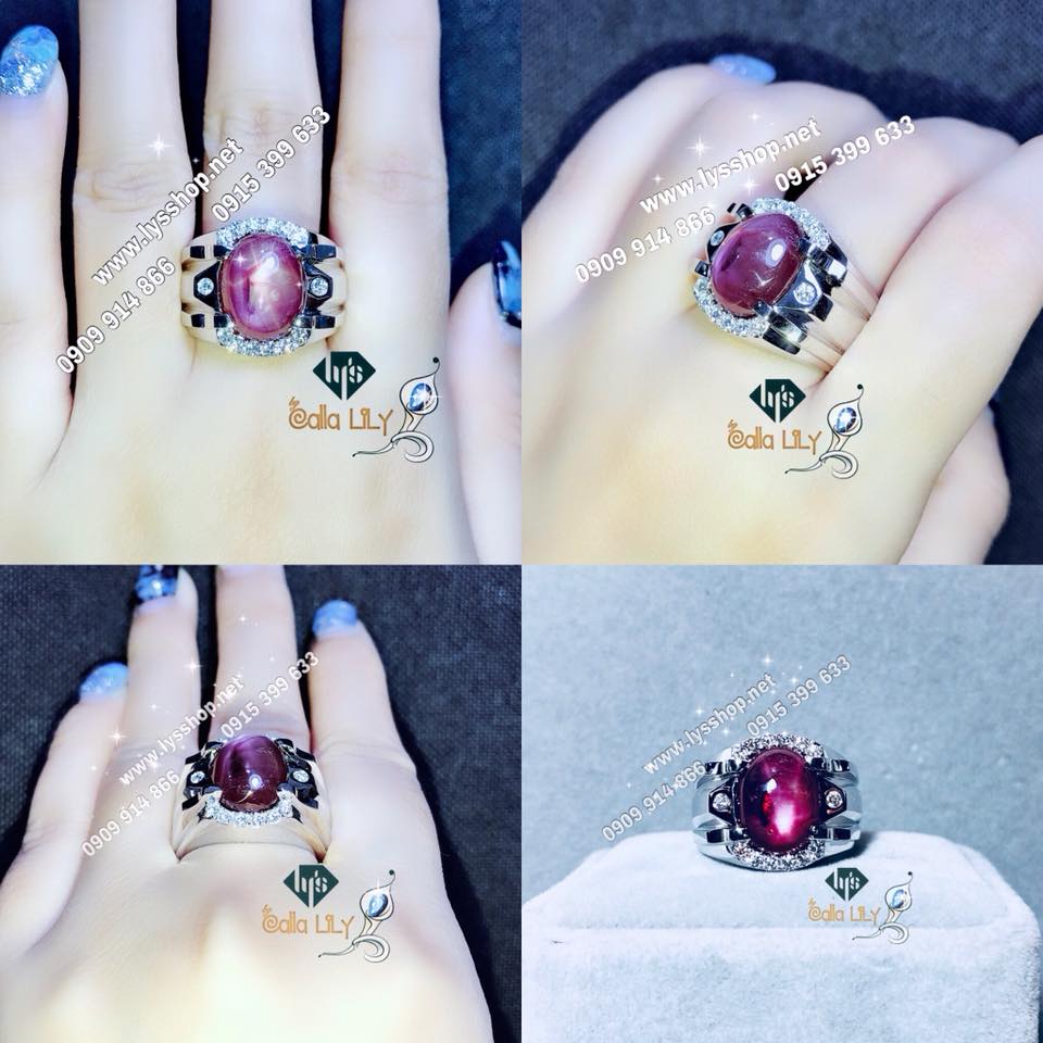 No.5014 - Nhẫn nam đính kim cương thiên nhiên với viên chủ ruby thiên nhiên 8,6 carat, kích thước 13,28x10,4 ly màu hồng tím phối tấm rất tôn màu viên chủ! Form nhẫn cứng cáp, mạnh mẽ! Nặng 3,18 chỉ!